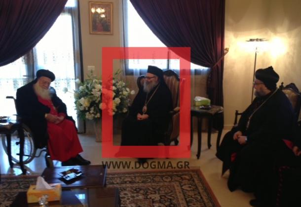 Είναι η πρώτη δημόσια εμφάνιση του Ελληνορθόδοξου Πατριάρχη Αντιοχείας κ. Ιωάννη, αδερφού του απαχθέντος Μητροπολίτη Χαλεπίου κ. Παύλου. Ο Ελληνορθόδοξος Πατριάρχης επισκέφθηκε τον Πατριάρχη των Συρο-Ιακωβιτών προκειμένου να συζητήσουν τις τελευταίες εξελίξεις.