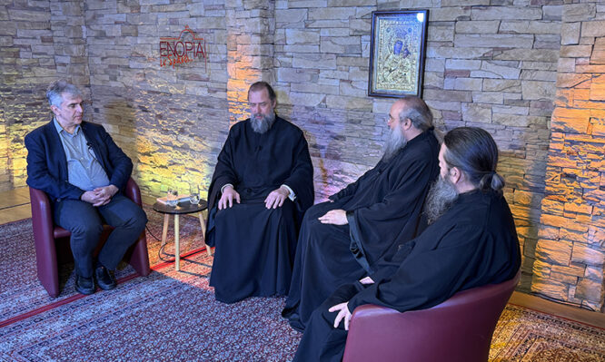 Ο Πρωτοπρεσβύτερος π. Σπυρίδων Τσιμούρης, Θεολόγος, Εκπαιδευτικός, φιλοξένησε τον Σεβασμιώτατο Μητροπολίτη Θεσσαλονίκης κ. Φιλόθεο, τον κ. Πέτρο Παναγιωτόπουλο, Αναπληρωτή Καθηγητή Ηθικής και Κοινωνιολογίας στη Θεολογική Σχολή του Α.Π.Θ. και τον π. Χρήστο Κούρτη, κληρικό της Ιεράς Μητροπόλεως Γρεβενών, σε μια συζήτηση με θέμα «Η τέχνη της θεολογίας».