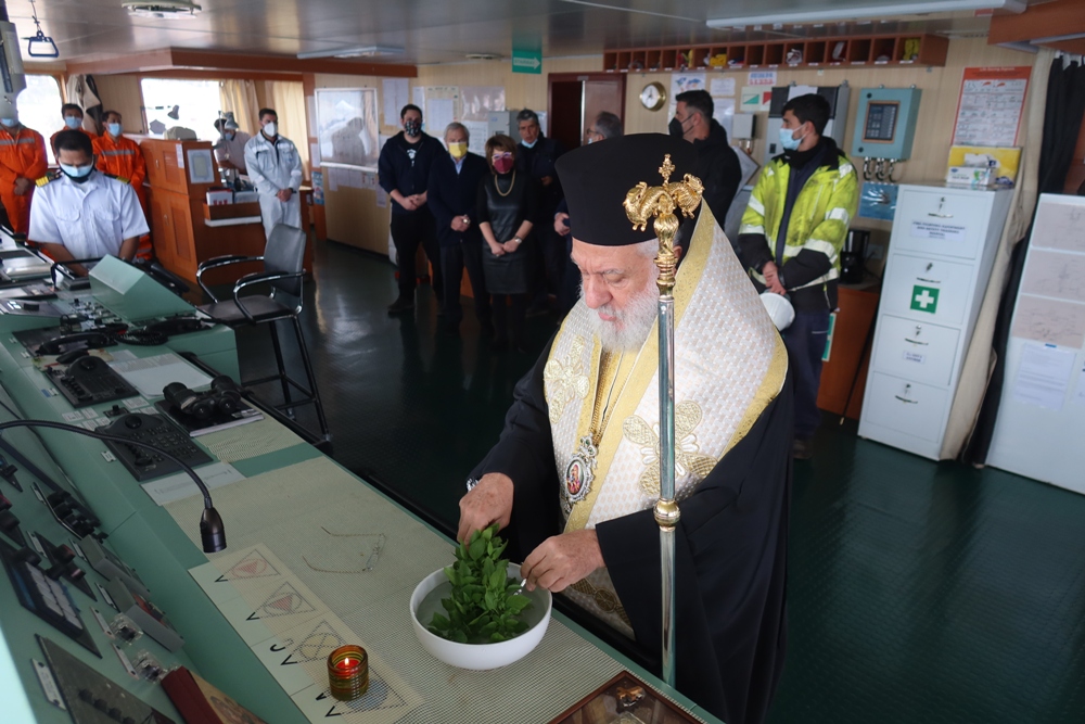 Ο Σεβασμιώτατος κ. Δωρόθεος Β’ ευχήθηκε καλούς και ασφαλείς πλόες για το πλοίο, και υγεία και δύναμη στους Μυκονίους Πλοιοκτήτες, τους οποίους ευχαρίστησε διότι επέλεξαν το «Νεώριο», Ναυπηγείο που κατέχει τα σκήπτρα και τα πρωτεία μεταξύ των Ναυπηγείων της Μεσογείου, για την επισκευή του πλοίου τους, στηρίζοντας έτσι το Ναυπηγείο, τους εργαζόμενους και, κατ’ επέκταση, την τοπική οικονομία.