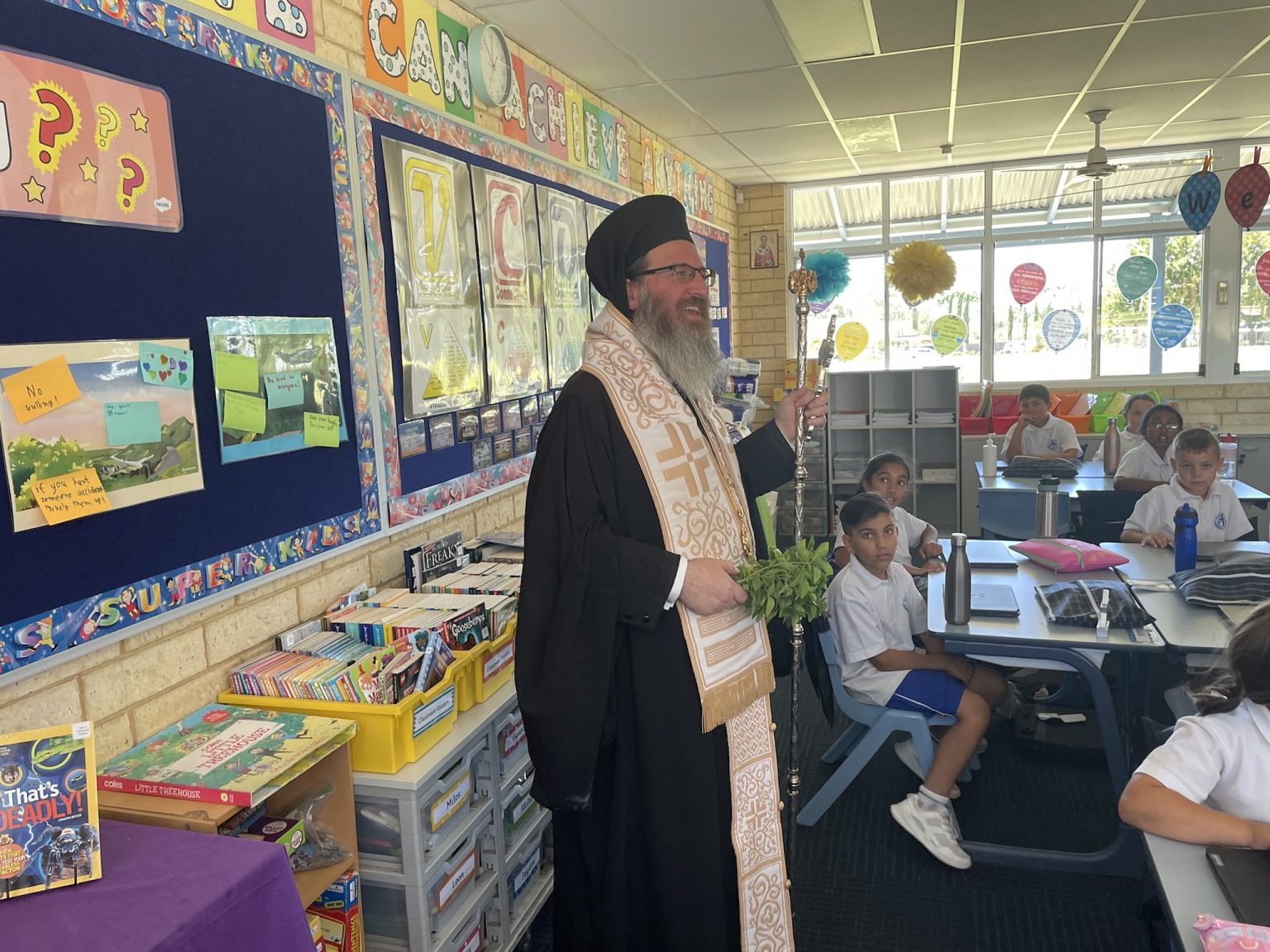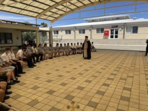 Ο Θεοφιλέστατος κ. Ελπίδιος μετέφερε στους μαθητές και το προσωπικό τις ευλογίες του Σεβασμιωτάτου Αρχιεπισκόπου Αυστραλίας κ.κ. Μακαρίου και τις καλύτερες ευχές του για τη σχολική χρονιά που έρχεται.