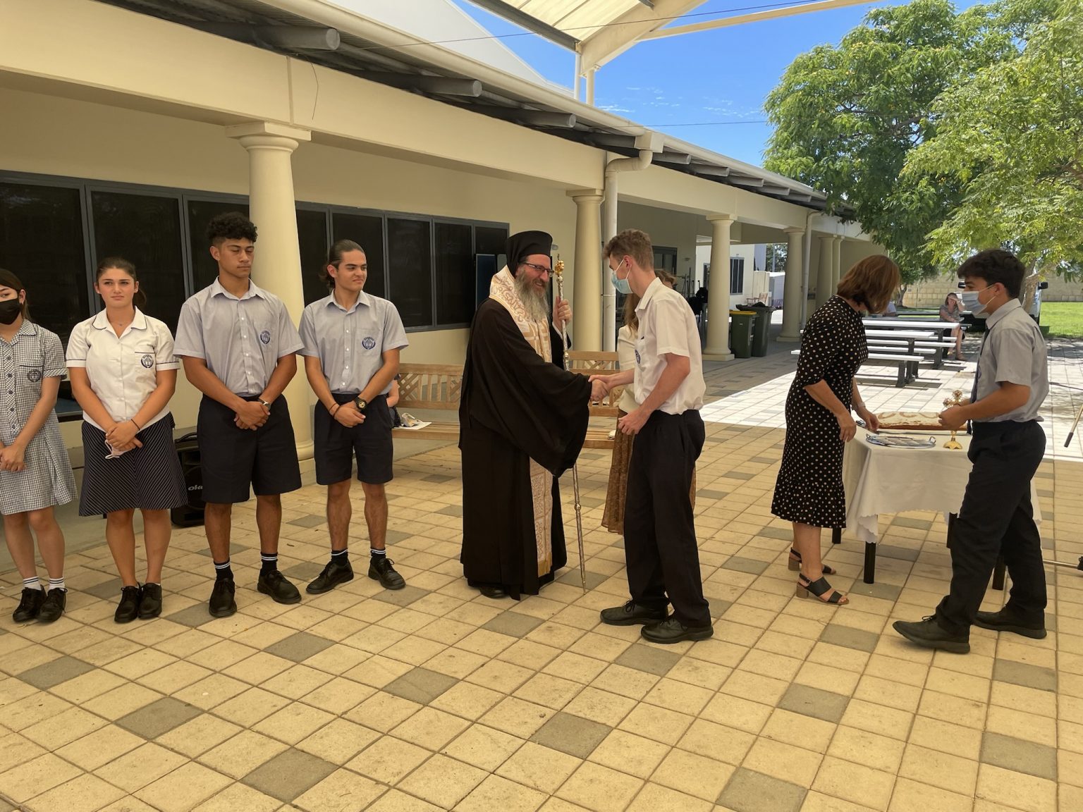 Ο Θεοφιλέστατος Επίσκοπος Κυανέων κ. Ελπίδιος τέλεσε πρόσφατα τον Αγιασμό για την έναρξη της νέας σχολικής χρονιάς στο Ελληνορθόδοξο Ημερήσιο Σχολείο του Αγίου Ανδρέα, στο προάστιο Dianella της Πέρθης. Η ακολουθία τελέστηκε σε εξωτερικό χώρο, με την παρουσία ολιγάριθμων μαθητών και μελών του προσωπικού, λόγω των περιορισμών για τον αποτροπή της εξάπλωσης της πανδημίας.