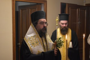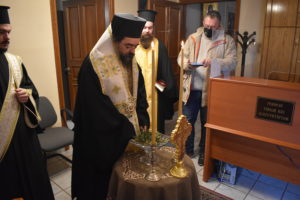 Εν τω μεταξύ το πρωί της ίδιας ημέρας ο Σεβασμιώτατος κ. Καλλίνικος, τέλεσε Αγιασμό στα Γραφεία της Μητροπόλεως με την ευκαιρία της πρωτομηνιάς.