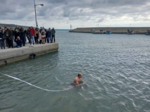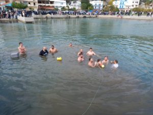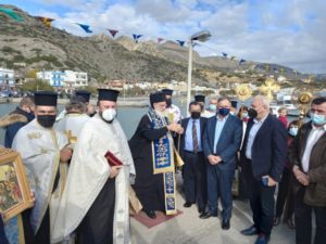 Στη συνέχεια ο Σεβ. κ. Ανδρέας μετέβη στο λιμάνι του Τσουτσούρου, όπου τέλεσε και εκεί τον καθαγιασμό των υδάτων.