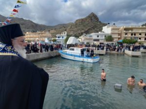 Ο Σεβ. Μητροπολίτης Αρκαλοχωρίου κ. Ανδρέας, μετά την ακολουθία του Μεγάλου Αγιασμού στον Ιερό Μητροπολιτικό Ναό, μετέβη στο Λιμάνι του Καστρίου Βιάννου όπου τέλεσε τον Αγιασμό των υδάτων.