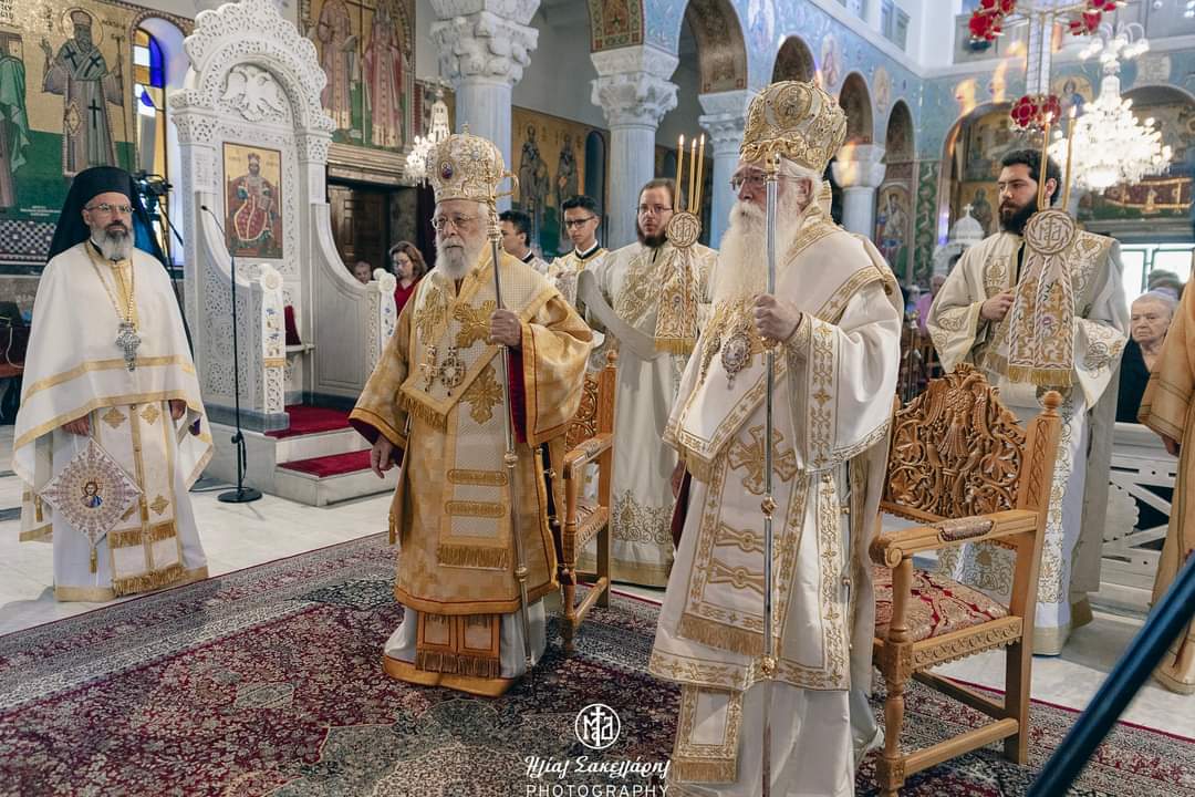Κατά την διάρκεια της Θείας Λειτουργίας τελέστηκε Μνημόσυνο για τους πεσόντες κατά την τουρκική εισβολή, επί τη επετείω των 50 χρόνων και για τον Άγνωστο Ναυτικό, όπως συμβαίνει κάθε χρόνο στην έναρξη της Ναυτικής Εβδομάδας. Ακολούθως, τον Κύπριο Ιεράρχη προσφώνησε ο Σεβ. Ποιμενάρχης μας κ. Ιγνάτιος, ο οποίος, μεταξύ άλλων, σημείωσε ότι «η μαρτυρική Αμμόχωστος, η οποία, «κρίμασι οίς οίδε Κύριος», παραμένει εδώ και πενήντα ολόκληρα χρόνια υπό τουρκική κατοχή, είναι το αντιπροσωπευτικότερο δείγμα της άδικης, παράνομης και απαράδεκτης διχοτόμησης της Κύπρου, της μεγάλης καταστροφής και του ξεριζωμού των κατοίκων της. Αισθανόμαστε ιερή συγκίνηση καθώς στο πρόσωπό σας ατενίζουμε την σπουδαία χριστιανική παράδοση του τόπου σας, που ξεκινά με τόν προκάτοχό σας, Άγιο Επιφάνιο, αρχιεπίσκοπο Κωνσταντίας της Κύπρου, τον Θαυματουργό, μεγάλο Πατέρα και Διδάσκαλο της Εκκλησίας μας. Ατενίζουμε, επίσης, την απαράμιλλη ομορφιά του τόπου σας και κυρίως το ψυχικό μεγαλείο των κατοίκων του. Ατενίζουμε, ωστόσο, με μεγάλη συγκίνηση, και την χαίνουσα πληγή του πόνου, της προσφυγιάς, του προβλήματος της κατοχής της βόρειας Κύπρου».