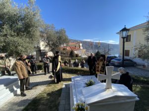 Στην συνέχεια, στις 12.00 το μεσημέρι, τελέσθηκε Αρχιερατικό Τρισάγιο επί του μνήματός του, πίσω από το Ιερό του Μητροπολιτικού Ναού Καστοριάς, στο προαύλιο του Επισκοπείου.