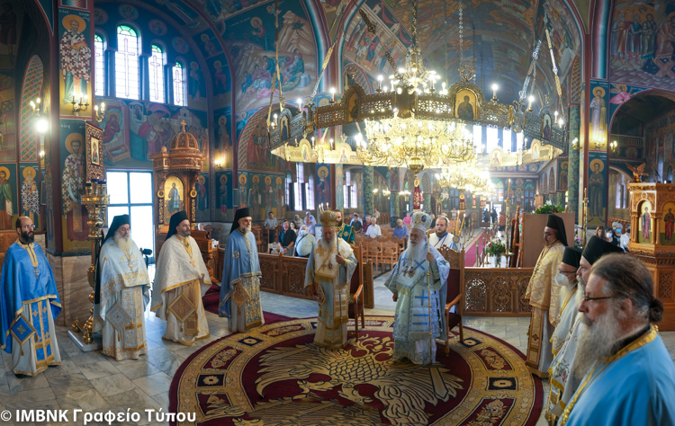 Καί καθώς αὐτές οἱ ἡμέρες εἶναι κατ᾽ ἐξοχήν ἀφιερωμένες στήν Παναγία μητέρα μας καί ἔχουμε τήν εὐκαιρία νά φιλοξενοῦμε στόν ἱερό ναό τήν ἱστορική καί θαυματουργό εἰκόνα τῆς Παναγίας ἀπό τή Μονή τῆς Πέτρας τοῦ Ὀλύμπου, ἄς μιμηθοῦμε τό παράδειγμα τοῦ Υἱοῦ της ἀλλά καί τό δικό της παράδειγμα προσευχῆς, διότι δι᾽ αὐτῆς μποροῦμε νά λαμβάνουμε καί τή χάρη τοῦ Θεοῦ καί τή χάρη τῆς Ὑπεραγίας Θεοτόκου, ὥστε νά προαγόμεθα στήν ἐν Χριστῷ ζωῇ καί νά ἁγιαζόμεθα, ὅπως ἁγιάσθηκε καί Ἐκείνη.