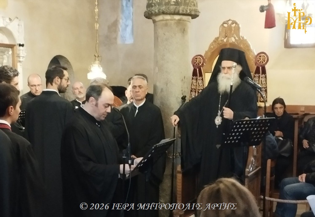 Με εκκλησιαστική λαμπρότητα ετελέσθη τη Δευτέρα 30 Μαρτίου 2026, το απόγευμα, στον βυζαντινό Ιερό Ναό της Αγίας Θεοδώρας Άρτης, η Ιερά Ακολουθία της Παννυχίδος, σύμφωνα με το βυζαντινό Τυπικό της Μεγάλης Εκκλησίας.