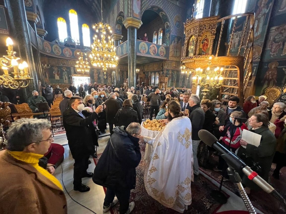Μετά το πέρας της Θείας Λειτουργίας, ο π. Κωνσταντίνος, με προτροπή του Σεβασμιωτάτου Ποιμενάρχου κ. Γαβριήλ, μοίρασε το αντίδωρο και δέχθηκε τις ευχές του εκκλησιάσματος.