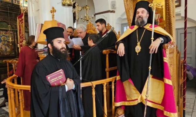 Ο Σεβασμιώτατος Μητροπολίτης Θήρας Αμοργού και νήσων κ. Αμφιλόχιος χοροστάτησε στην ακολουθία της Δ’ στάσης των Χαιρετισμών προς την Υπεραγία Θεοτόκο στον Ιερό Ναό Αγίων Κωνσταντίνου και Ελένης στον Μανωλά Θηρασιάς.