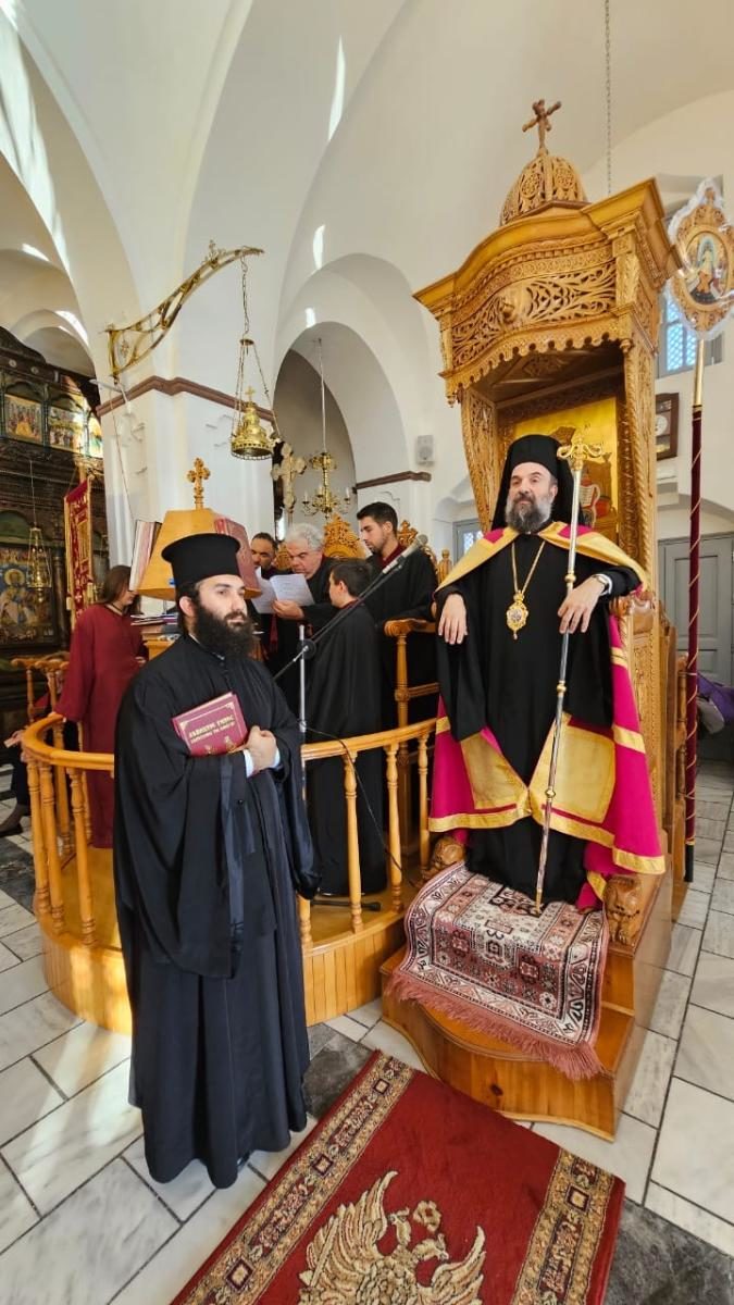 Το ιερό αναλόγιο διηκόνησαν ο Διευθυντής της Σχολής Βυζαντινής Μουσικής της Ιεράς Μητροπόλεως κ. Ευτύχιος Μαρκοζάννες, και μαθητές της Σχολής.