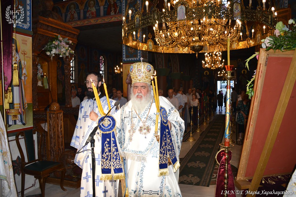 Ο Σεβασμιώτατος, στο κήρυγμά του, ερμήνευσε την Εικόνα της Κοίμησης, όπως αυτή φιλοτεχνήθηκε από το χρωστήρα του Ευαγγελιστή Λουκά. «Η μετάσταση της Θεοτόκουσυνιστά Πάσχα, διάβαση στην αιώνια Ζωή»!