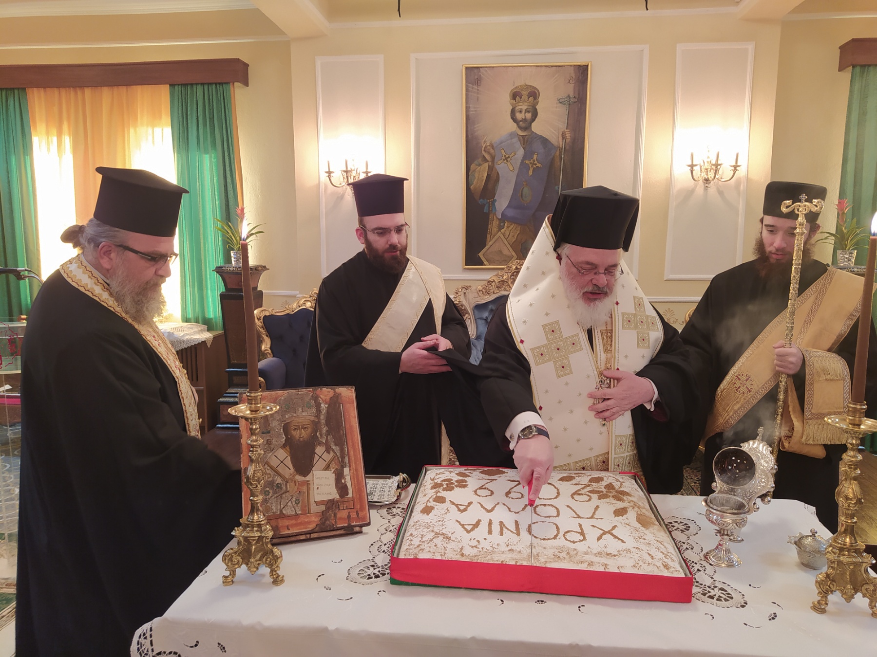 Μετά την κοπή της Βασιλόπιτας και τις καθιερωμένες ευχές ο Σεβασμιώτατος ανεκοίνωσε στο Ιερό Σώμα την πρόσφατη απόφαση της Αγίας και Ιεράς Συνόδου του Οικουμενικού Πατριαρχείου, περί της κατατάξεως στο Αγιολόγιο της Μεγάλης του Χριστού Εκκλησίας του Ιερομάρτυρος Αγίου Κυρίλλου του ΣΤ’, Πατριάρχου Κωνσταντινουπόλεως, που μαρτυρικώς απαγχονίσθηκε στις 18 Απριλίου 1821 στην Αδριανούπολη και ο τάφος του οποίου βρίσκεται στο παρέβριο χωριό του Πυθίου, κοντά στο Διδυμότειχο, και εξέφρασε την ευγνωμοσύνη της τοπικής Εκκλησίας προς τον Οικουμενικό Πατριάρχη και την ικανοποίηση της τοπικής κοινωνίας για το γεγονός.