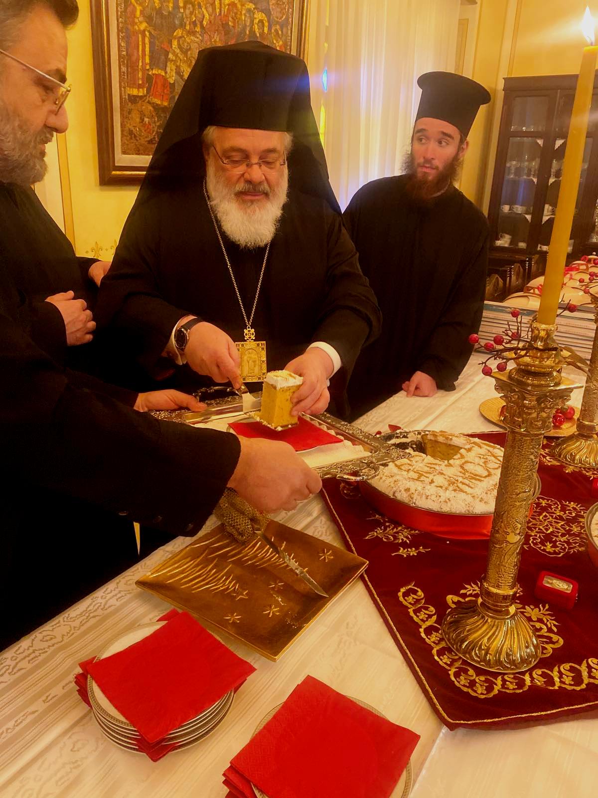 Την προτεραία, παραμονή της Πρωτοχρονιάς, ο Σεβασμιώτατος έκοψε για τους υπαλλήλους, τα στελέχη και τους συνεργάτες της Ιεράς Μητροπόλεως την Αγιοβασιλόπιτα στο Επισκοπείο του Διδυμοτείχου και ευχήθηκε: «Να έχουν χαρά στην καρδιά, υγεία στο σώμα, δύναμη στους κόπους,υπομονή στις θλίψεις, αντοχή στους πειρασμούς και μακροθυμία προς όλους».