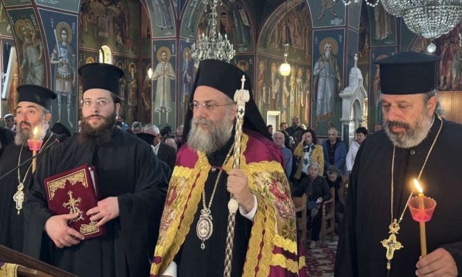 Το βράδυ στον Ιερό Ναό Αγίου Αθανάσιου Μπάρας τελέσθηκε Ιερά Αγρυπνία, με Θεία Λειτουργία των Προηγιασμένων Τιμίων Δώρων, ιερουργούντος του Σεπτού μας Ποιμενάρχου κ. Χρυσοστόμου και με τη συμμετοχή ιερέων της Πόλεως, με αφορμή την έλευση της Δεξιάς Χειρός του Αγίου Σπυρίδωνος Επισκόπου Τριμυθούντος του Θαυματουργού. Στο αναλόγιο μαζί με τον χορό των Ιεροψαλτών έψαλε και ο π. Ευάγγελος Παπανικολάου, ο οποίος κήρυξε το Θείο Λόγο πριν το τέλος της Ιεράς Αγρυπνίας.
