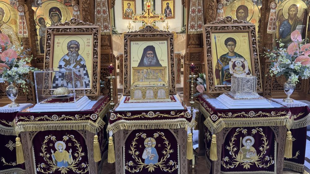 Τα ιερά λείψανα του Αγίου Ιωσήφ του Ησυχαστού τοποθετήθηκαν εντός του Ιερού Ναού σε ειδικό προσκυνητάρι όπου και θα παραμείνουν στον Ιερό Ναό μέχρι την Πέμπτη 10 Οκτωβρίου τ.ε. ώρα 10.00π.μ.