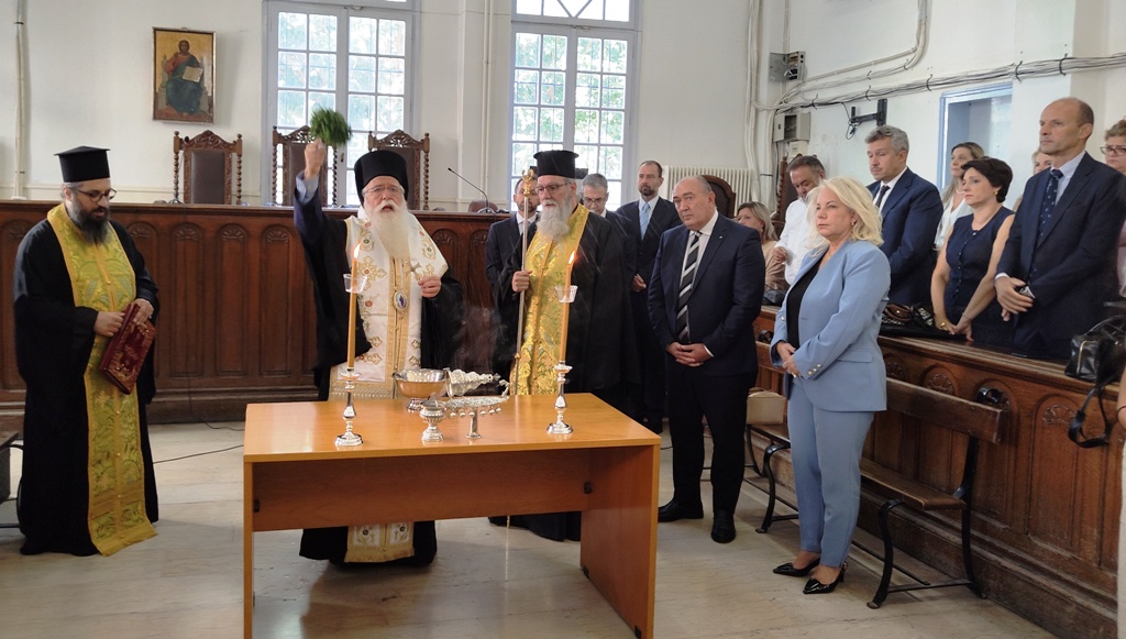 Tελέστηκε (17/9) ο Αγιασμός του Δικηγορικού Συλλόγου Βόλου για την έναρξη του νέου Δικαστικού Έτους 2024-2025, στο ακροατήριο του ισογείου ορόφου του Δικαστικού Μεγάρου, από τον Σεβασμιώτατο Μητροπολίτη Δημητριάδος και Αλμυρού κ. Ιγνάτιο, παρουσία της αντιπεριφερειάρχου Μαγνησίας και Σποράδων Άννας – Μαρίας Παπαδημητρίου, των Δικαστικών και Εισαγγελικών Αρχών της πόλεως, του Δικηγορικού Συλλόγου Βόλου καθώς επίσης και των Δικαστικών Υπαλλήλων.