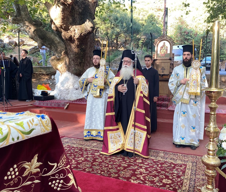 Στο κήρυγμά του, κατά τον Μέγα Πανηγυρικό Εσπερινό, ο Σεβασμιώτατος ανάφερε χαρακτηριστικά ότι η σημερινή εορτή είναι μία «Πηγή χαράς, αγαλλιάσεως και παραμυθίας γιατί μας δίνετε μία ακόμη ευκαιρία να εορτάσουμε αυτή που είχε στα σπλάχνα Της, την «Όντως Ζωή». Έχουμε μαζί μας την Πλατυτέρα των Ουρανών, αυτή που απλώνει τα χέρια της και αγκαλιάζει ολόκληρο τον τόπο και όλους εμάς…Έχουμε κοντά μας Μητέρα Αληθινή που βρίσκεται κοντά στα παιδιά της και το νιώθουμε αυτό καθημερινά γιατί και αυτή έζησε τη χαρά όταν έλαβε το μήνυμα από τον Αρχάγγελό ότι θα φέρει στο κόσμο τον Μονογενή Υιό και Λόγο του Θεού… Είναι αυτή που έζησε τη χαρά του πρώτου θαύματος του Υιού της στον Γάμο της Κανά και συνέβαλε στο να παρατεθεί η χαρά και ευλόγησε τον γάμο και την οικογένεια σε μια εποχή που όλοι έχουν βαλθεί να τη διαλύσουν, προβάλλοντας ό,τι μπορούν πιο αισχρό, θέλουν να εκμηδενίσουν το ακριβό αυτό κύτταρο της κοινωνίας, που εγγυάται την ενότητα του λαού μας. Θέλουν ακόμα και με ανίερα νομοθετήματα να εξευτελίσουν αυτό που είναι για τον Ορθόδοξο και τον Έλληνα η Οικογένεια, δηλ. ο Γάμος ανδρός και γυναικός και η συγκρότηση οικογένειας με παιδιά, Μυστήριο μέγα και ιερό, γιατί είναι η συνέχεια της δημιουργίας του Ίδιου του Θεού…. Είναι η Παναγία που ένωσε μαθητές και μαθήτριες και είναι αυτή που πάντοτε ενώνει και ποτέ δεν διχάζει.. Είναι αυτή που μας καλεί όλους σε ενότητα γύρω από το προσώπου του Ιησού Χριστού και γίνεται Οδηγήτρια, σε μία ζωή ενότητας, αγάπης, προσφοράς και θυσίας.»