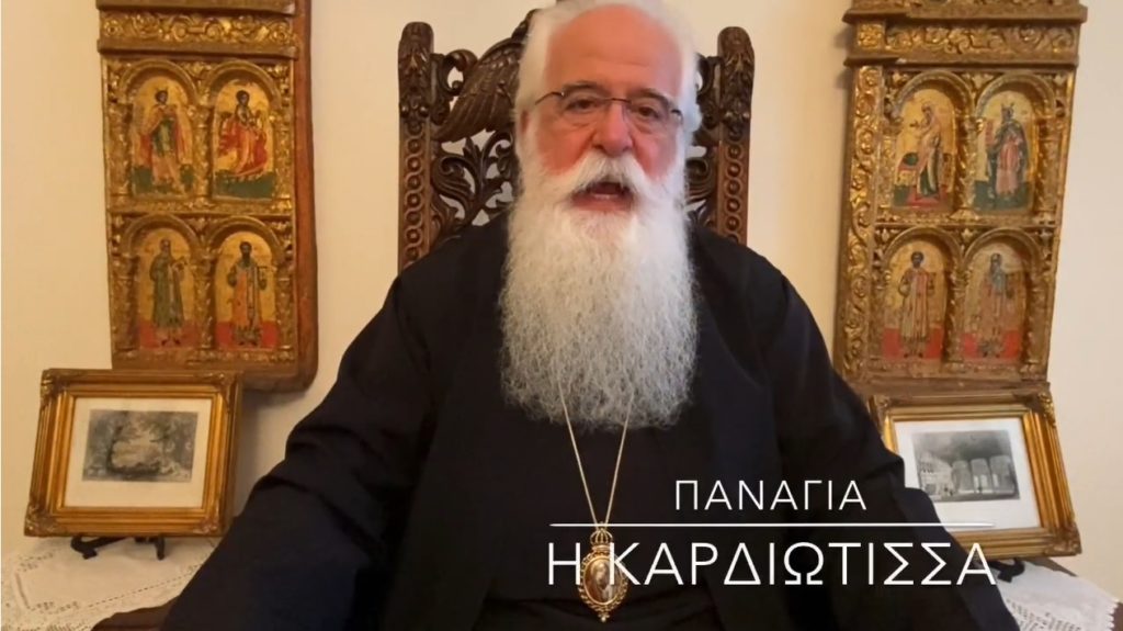 “Μιά ξεχωριστή εικόνα της Παναγίας μας είναι αυτή της Καρδιώτισσας. Λέγεται έτσι γιατί ο Χριστός, όπως στη Γλυκοφιλούσα αγκαλιάζει την Παναγία αλλά είναι στραμμένος ολόκληρος προς αυτή και ενώνονται οι δυό καρδιές τους. Ακουμπάει στην καρδιά της Παναγίας. απλώνει όμως τα χέρια Του, σε σχήμα Σταυρού.
