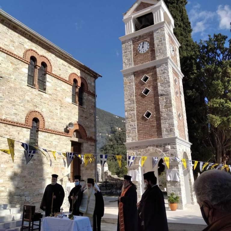 Ο Σεβασμιώτατος συνεχάρη τον Προϊστάμενο του Ναού π. Ιωάννη Καμακά και το περί αυτόν Εκκλησιαστικό Συμβούλιο, για την υλοποίηση του έργου, καθώς και όλους όσοι, ποικιλοτρόπως, συνέβαλαν στην ανοικοδόμηση του νέου Κωδωνοστασίου.