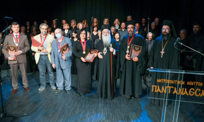 Στο δεύτερο μέρος της εκδήλωσης μίλησε ο Μητροπολίτης Βεροίας, Ναούσης και Καμπανίας κ. Παντελεήμων, ο οποίος στη συνέχεια απένειμε το χρυσό μετάλλιο της ΠΑΝΤΑΝΑΣΣΗΣ στους α) Πρωτοπρεσβύτερο του Οικουμενικού Θρόνου π. Στυλιανό Μακρή, για τη συγγραφή της Ακολουθίας των Ναουσαίων Νεομαρτύρων, β) Καθηγητή ΑΠΘ κ. Παναγιώτη Υφαντή, για τις θεολογικές μελέτες του για τους Ναουσαίους Νεομάρτυρες, γ) στον Ιστορικό και Άρχοντα του Οικουμενικού Θρόνου κ. Εμμανουήλ Βαλσαμίδη, για τις ιστορικές μελέτες του για το Ολοκαύτωμα της Νάουσας και δ) στον Εκπαιδευτικό και Αγιογράφο κ. Νικόλαο Χατζηιωάννου για την ιστόρηση της πρώτης Εικόνας των Ναουσαίων Νεομαρτύρων.