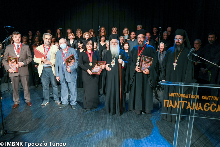 Στο δεύτερο μέρος της εκδήλωσης μίλησε ο Μητροπολίτης Βεροίας, Ναούσης και Καμπανίας κ. Παντελεήμων, ο οποίος στη συνέχεια απένειμε το χρυσό μετάλλιο της ΠΑΝΤΑΝΑΣΣΗΣ στους α) Πρωτοπρεσβύτερο του Οικουμενικού Θρόνου π. Στυλιανό Μακρή, για τη συγγραφή της Ακολουθίας των Ναουσαίων Νεομαρτύρων, β) Καθηγητή ΑΠΘ κ. Παναγιώτη Υφαντή, για τις θεολογικές μελέτες του για τους Ναουσαίους Νεομάρτυρες, γ) στον Ιστορικό και Άρχοντα του Οικουμενικού Θρόνου κ. Εμμανουήλ Βαλσαμίδη, για τις ιστορικές μελέτες του για το Ολοκαύτωμα της Νάουσας και δ) στον Εκπαιδευτικό και Αγιογράφο κ. Νικόλαο Χατζηιωάννου για την ιστόρηση της πρώτης Εικόνας των Ναουσαίων Νεομαρτύρων.