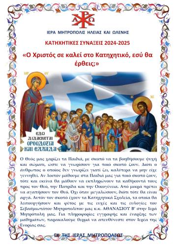 Για πληροφορίες εγγραφής και έναρξης των μαθημάτων, παρακαλούμε θερμά να απευθύνεστε στον Ιερέα της Ενορίας σας.