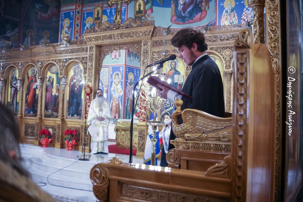 Το μήνυμα της Ιεράς Συνόδου για τον εορτασμό των Τριών Ιεραρχών ανέγνωσε ο Πρωτοσύγκελλος π. Εφραίμ, ενώ την διακονία του Θείου Λόγου ο κ. Συμεών την ανέθεσε σε έναν από τους μαθητές της Εκκλησιαστικής Σχολής, τον οποίο μάλιστα ο ίδιος ο κ. Συμεών οδήγησε στον Αρχιερατικό του Θρόνο για να διακονήσει το Θείο Κήρυγμα.