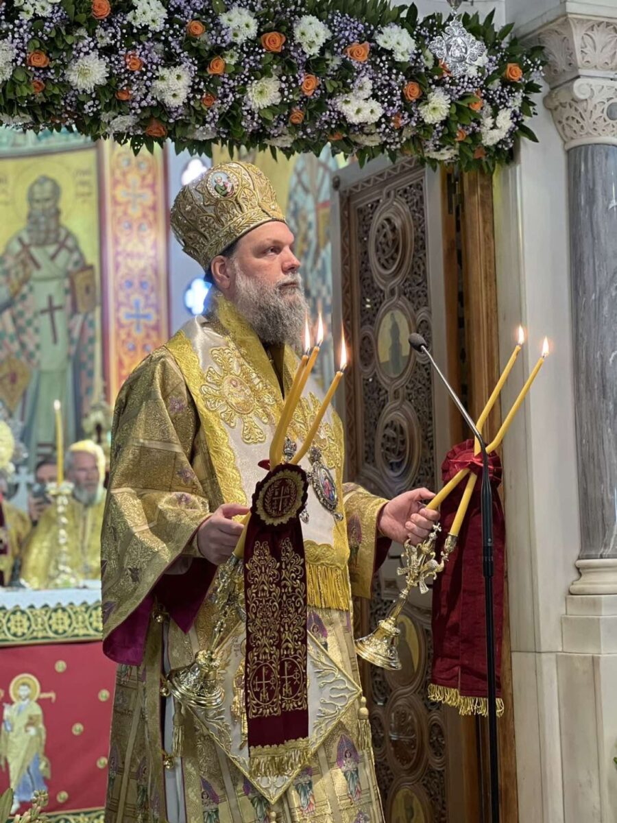 Πριν το πέρας της Θείας Λειτουργίας, ο Πανοσιολ. Πρωτοσύγκελλος της Ιεράς Μητροπόλεως Αρχιμ. Επιφάνιος Αρβανίτης προσφώνησε, εκ μέρους του ιερού Κλήρου, τον Μητροπολίτη κ. Γαβριήλ και αναφέρθηκε στο χαρμόσυνο γεγονός της συμπλήρωσης της δεκαετούς ευκλεούς διαποίμανσής του στην Ιερά Μητρόπολη Νέας Ιωνίας, επισημαίνοντας τους κύριους σταθμούς του ποιμαντικού, κοινωνικού και ιεραποστολικού έργου του.