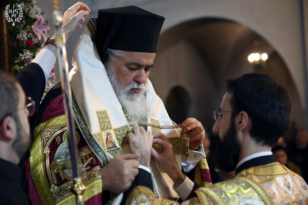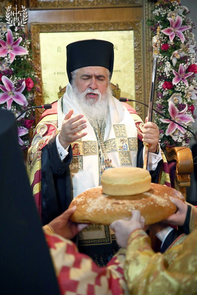 Στο τέλος της Θείας Λειτουργίας ο Σεβασμιώτατος, αφού ευχαρίστησε τους πατέρες, τον χορό των ιεροψαλτών και τους συνεργάτες της ενορίας για την άψογη προετοιμασία και οργάνωση της πανηγύρεως, τον πιστό λαό και τους μαθητές των σχολείων της περιοχής του Ευόσμου για τη συμμετοχή τους στο πανηγύρι, τέλεσε δοξολογία καθώς και δέηση υπέρ των κεκοιμημένων εκπαιδευτικών και μαθητών των σχολείων της Μητροπολιτικής Περιφέρειας.