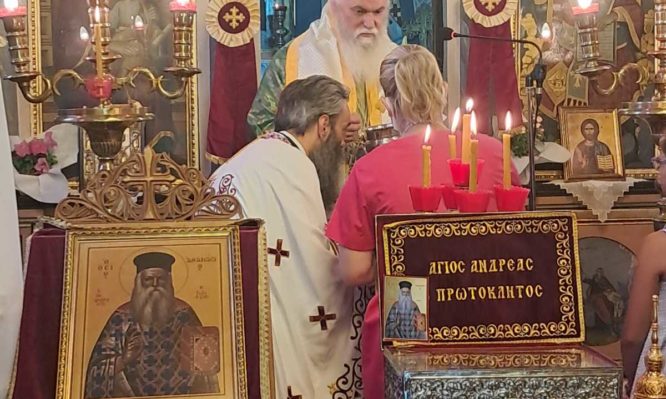 Το Σάββατο 17 Αυγούστου 2024, ημέρα μνήμης της οσιακής κοιμήσεως του Οσίου Πατρός Αθανασίου Χαμακιώτου του Αγιολαυριώτου, ο Σεπτός Ποιμενάρχης μας, Σεβασμιώτατος Μητροπολίτης Καλαβρύτων και Αιγιαλείας κ. Ιερώνυμος, τέλεσε το Μυστήριο της Θείας Ευχαριστίας στον Ιερό Ναό Αγίου Ανδρέου Τουρλάδος, απ’ όπου κατήγετο ο προσφάτως αγιοκαταταχθείς Όσιος Αθανάσιος. Τον Σεβασμιώτατο πλαισίωσαν ο Αρχιερατικός Επίτροπος Καλαβρύτων π. Χρήστος Μπίρμπας και ο Αιδεσιμολογιώτατος Πρωτοπρεσβύτερος π. Σπυρίδων Καζάνης, εκ της Ιεράς Μητροπόλεως Περιστερίου, ο οποίος κατάγεται από την Τουρλάδα και διατελεί πρόεδρος του τοπικού Συλλόγου. Επιπλέον, την ίδια ημέρα, στην Ιστορική Ιερά Μονή της Αγίας Λαύρας, όπου εκάρη μοναχός και ασκήτευσε ο Όσιος Αθανάσιος, τέλεσε τη Θεία Λειτουργία ο Σεβασμιώτατος Μητροπολίτης Σερβίων και Κοζάνης κ. Παύλος.