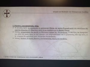 Ακολούθως, μίλησε κ. Αθανάσιος Γλάρος, Αν. Καθηγητής της Θεολογικής Σχολής του Ε.Κ.Π.Α., ο οποίος αναφέρθηκε στο πολύπλευρο έργο που επιτελεί το Ι.Π.Ε. και στη συνέχεια ανέπτυξε το θέμα «Ιστορία και Θεολογία των Οικουμενικών Συνόδων».