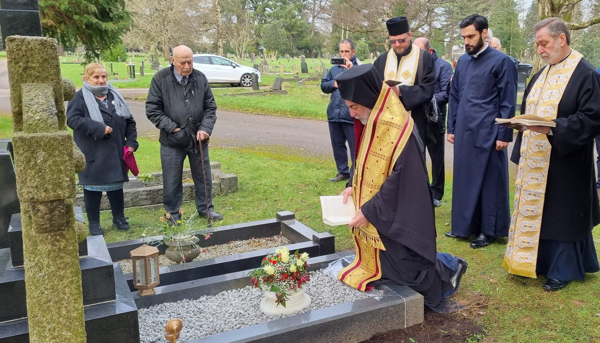 Η επίσκεψη ξεκίνησε το Σάββατο με τρισάγιο που τέλεσε ο Σεβασμιώτατος εις μνήμην του μακαριστού Αρχιμανδρίτου κυρού Γενναδίου Θέμελη που εκοιμήθη το 1928 και είναι ο μόνος ιερεύς που διακόνησε την συγκεκριμένη ενορία και έχει ταφεί στην Ουαλία. Ο τάφος του ανακαινίστηκε και αναστηλώθηκε πρόσφατα.