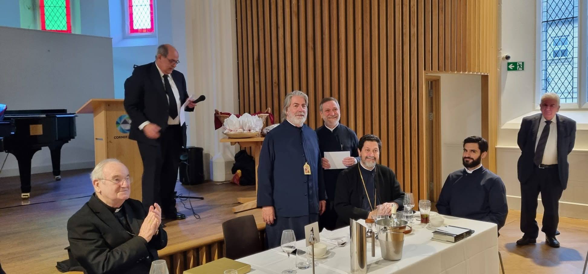 Στο δείπνο και το γεύμα παρευρέθηκε ο Αρχιεπίσκοπος της Ρωμαιοκαθολικής Εκκλησίας του Κάρντιφ κ. George Stack ο οποίος υποδέχθηκε θερμά τον Σεβασμιώτατο.