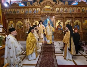 Την Κυριακή ο Σεβασμιώτατος προέστη της Θείας Λειτουργίας και κήρυξε τον Θείο Λόγο. Η υποδοχή της κοινότητος ήταν εγκάρδια και ιδιαιτέρως θερμή. Ακολούθησε γεύμα σε κέντρο της πόλεως όπου ο Σεβασμιώτατος ευλόγησε επίσης την Βασιλόπιτα.