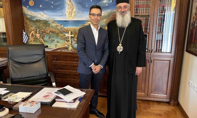 Την Πέμπτη 25 Απριλίου 2024, ο Μητροπολίτης μας υποδέχθηκε στα γραφεία της Μητροπόλεως τον κ. Σωτήριο Σέρμπο. Ο κ. Σέρμπος είναι Επίκουρος Καθηγητής Διεθνούς Πολιτικής στο Δημοκρίτειο Πανεπιστήμιο Θράκης, καθώς και υποψήφιος Ευροβουλευτής με την Νέα Δημοκρατία. Συζήτησαν θέματα που αφορούν τις πανεπιστημιακές δομές της περιοχής μας και αντάλλαξαν ευχές για το Πάσχα.