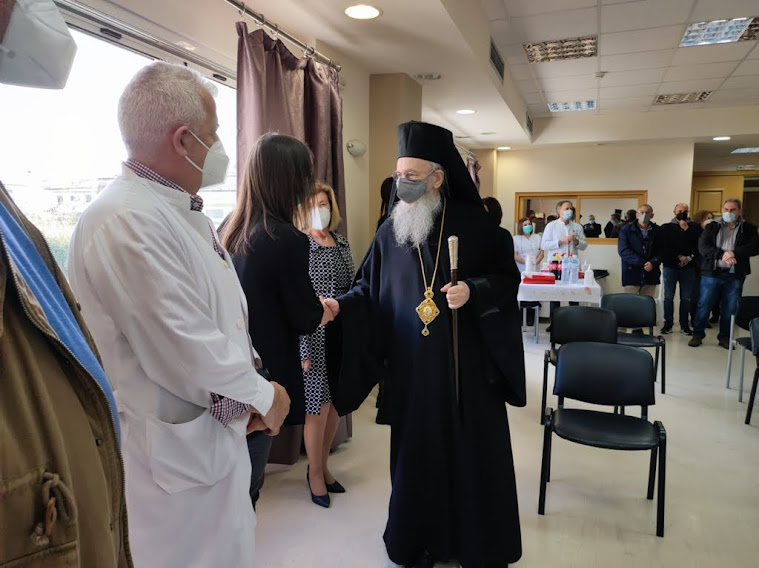 Ο Σεβασμιώτατος, κατά τον σύντομο χαιρετισμό του, εξέφρασε την χαρά του και την τιμή που αποδίδει στα πρόσωπα των ιατρών και των νοσηλευτών που όλον αυτόν τον καιρό επωμίζονται την θεραπεία και τη νοσηλεία των ασθενών του κορωνοϊού σε οριακές, πολλές φορές, συνθήκες.