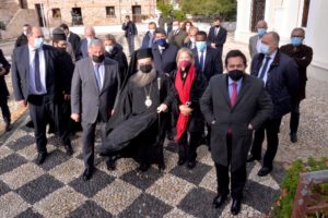Την Παρασκευή 10ην Δεκεμβρίου 2021 ο Πρόεδρος της Γαλλικής Γερουσίας κ. Μ. Gerard Larcher, καθώς και οι Γερουσιαστές Μ. Jean-Francois Rapin, M. Christian Cambon, M. Didier Marie, M. Philippe Bonnecarrere, M. Hubert de Canson και M. Patrick Dray πραγματοποίησαν προσκυνηματική επίσκεψη στην ιστορική και μαρτυρική, ένδοξη Ιερά Μονή του Αγίου Μηνά Χίου, όπου τους υποδέχθηκε ο Σεβασμιώτατος Μητροπολίτης Χίου, Ψαρών και Οινουσσών κ. Μάρκος.