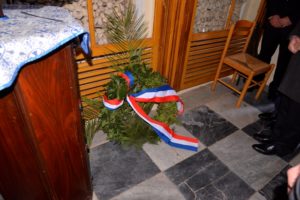 Ακολούθησε, με ιερή συγκίνηση, η επίσκεψη στο ολοκαυτωθέν από τους Τούρκους το 1822 και αιματόστικτο μέχρι σήμερα Καθολικό της Ιεράς Μονής, καθώς και στο οστεοφυλάκειο του ιερού παρεκκλησίου των Αγίων Τεσσαράκοντα Μαρτύρων, όπου ο πρόεδρος της Γαλλικής Γερουσίας κατέθεσε δάφνινο στεφάνι προς τιμή των νεκρών και στη συνέχεια μετέβησαν στο Ιστορικό Μουσείο των Σφαγών της Χίου «ΙΣΤΟΡΙΗΣ ΑΠΟΔΕΞΙΣ ΗΔΕ».