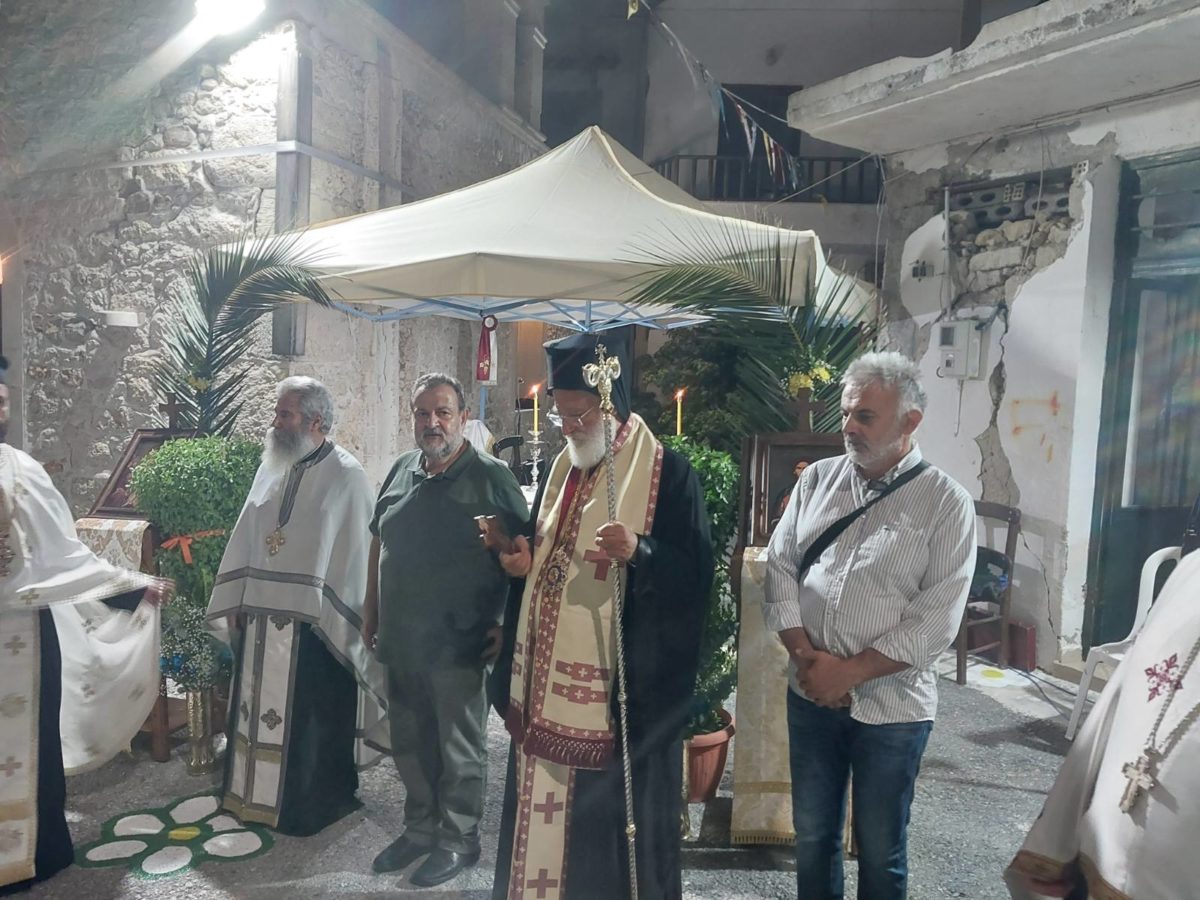 Η ακολουθία του Εσπερινού τελέστηκε έξωθεν του Ιερού Ναού διότι η Εκκλησία έχει υποστεί ζημιές από τον σεισμό της 27ης Σεπτεμβρίου 2021.