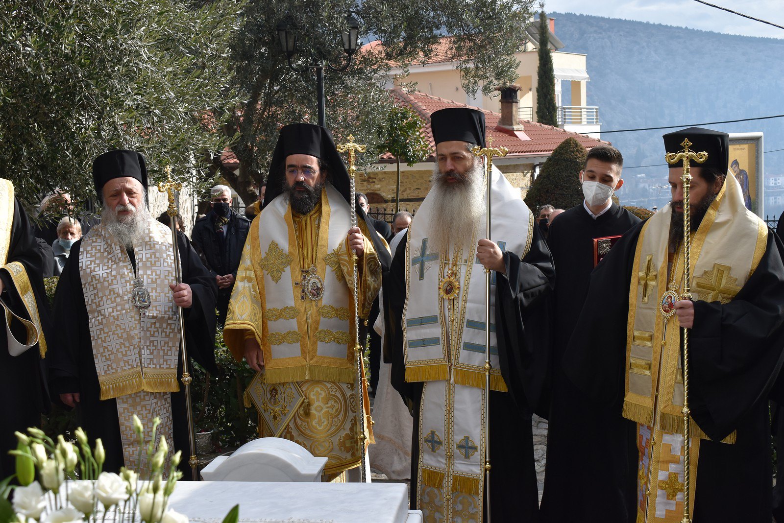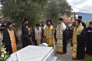 Στη συνέχεια τελέστηκε το ιερό μνημόσυνο, ενώ στο τέλος της Θείας Λειτουργίας, κλήρος και λαός κατήλθαν στον αύλειο χώρο του Επισκοπείου, όπου αναπαύεται το σκήνωμα του μακαριστού και ενώπιον του τάφου τέλεσαν Τρισάγιο υπέρ αναπαύσεως της ψυχής του.