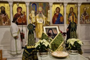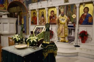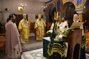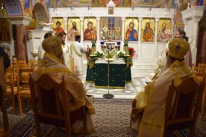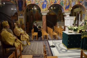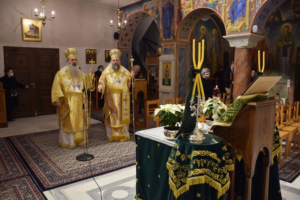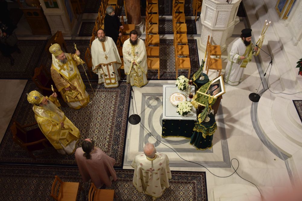 Στη Θεία Λειτουργία, η οποία τελέσθηκε σύμφωνα με τα προβλεπόμενα από τις υγειονομικές αρχές μέτρα προστασίας, λόγω της πανδημίας covid-19, προεξήρχε ο Σεβασμιώτατος Μητροπολίτης Σταγών και Μετεώρων κ. Θεόκλητος, όπου συλλειτούργησε και ο Ποιμενάρχης των Τρικάλων κ. Χρυσόστομος.