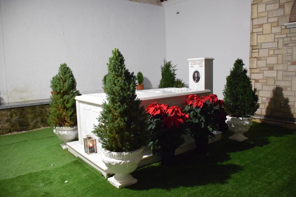 Ακολούθησε αρχιερατικό τρισάγιο επί του τάφου όπου αναπαύεται από της 8ης Δεκεμβρίου 2020 ο μακαριστός ιεράρχης στον αύλειο χώρο του Ναού.