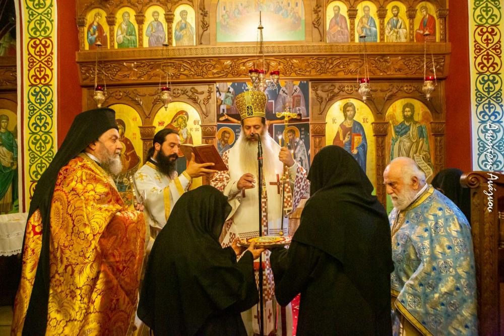 Απευθυνόμενος ο Σεβασμιώτατος κ. Συμεών στην Καθηγουμένη της Μονής, Γερόντισσα Φιλοθέη, πατρικώς και εγκαρδίως ευχήθηκε: