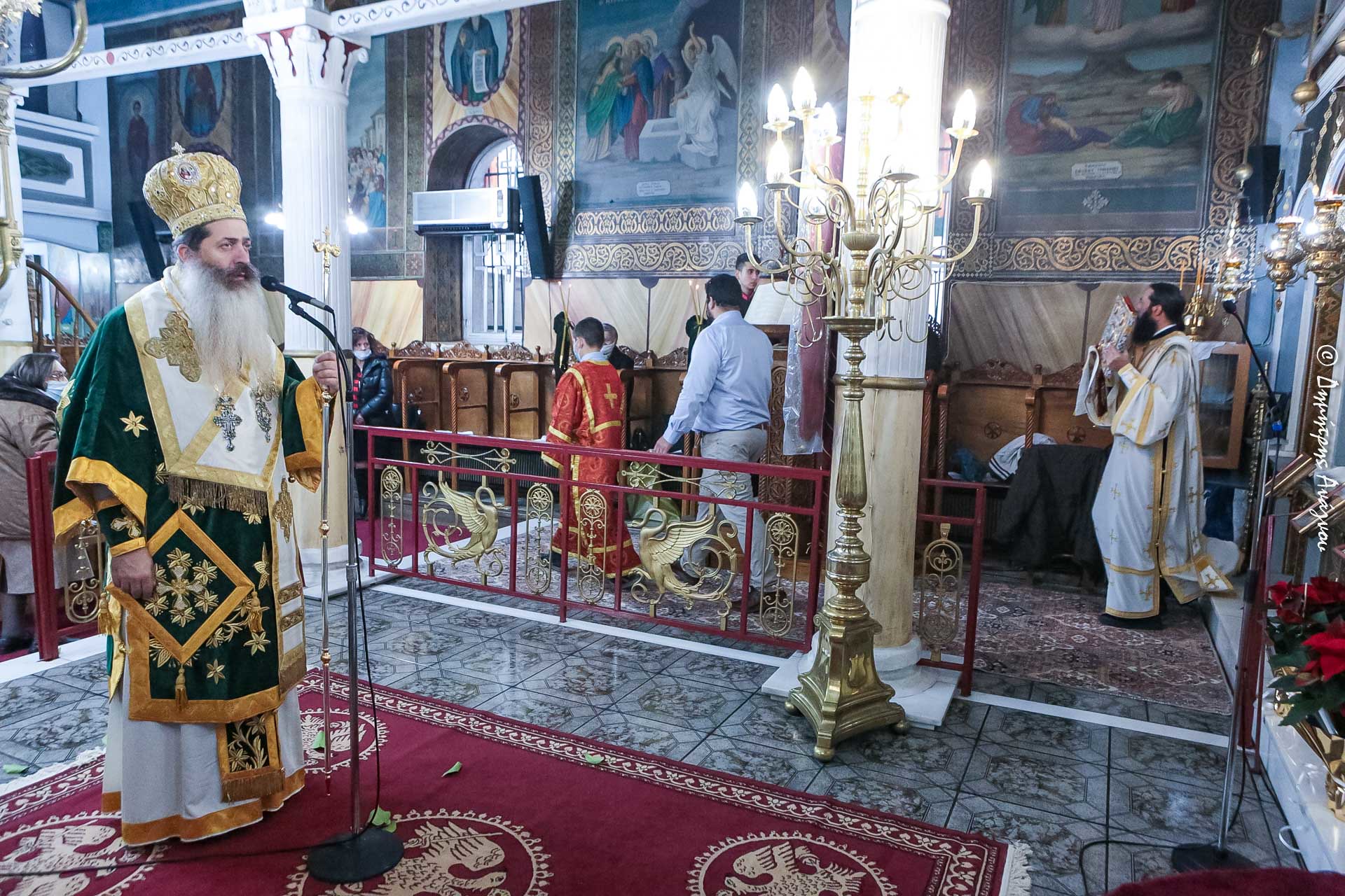 Στον Ιερό Ναό των Αγίων Θεοδώρων Λαμίας ιερούργησε σήμερα Κυριακή των Προπατόρων, 12 Δεκεμβρίου, ο Σεβασμιώτατος Μητροπολίτης Φθιώτιδος κ. Συμεών, ημέρα μνήμης του Αγίου Σπυρίδωνος Επισκόπου Τριμυθούντος του Θαυματουργού. Στην Ενορία των Αγίων Θεοδώρων φυλάσσεται παλαιά και θαυματουργός Εικόνα του Αγίου.