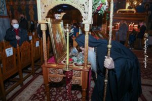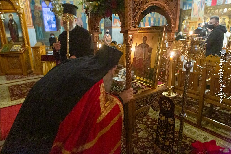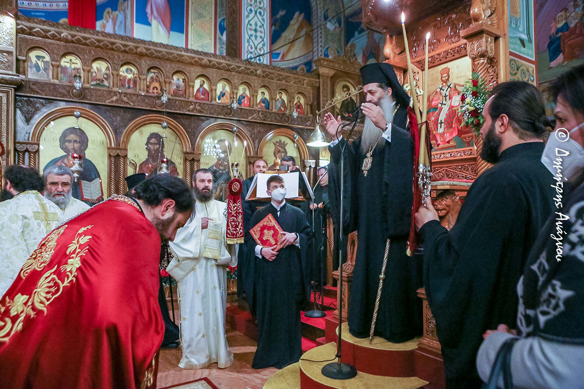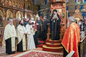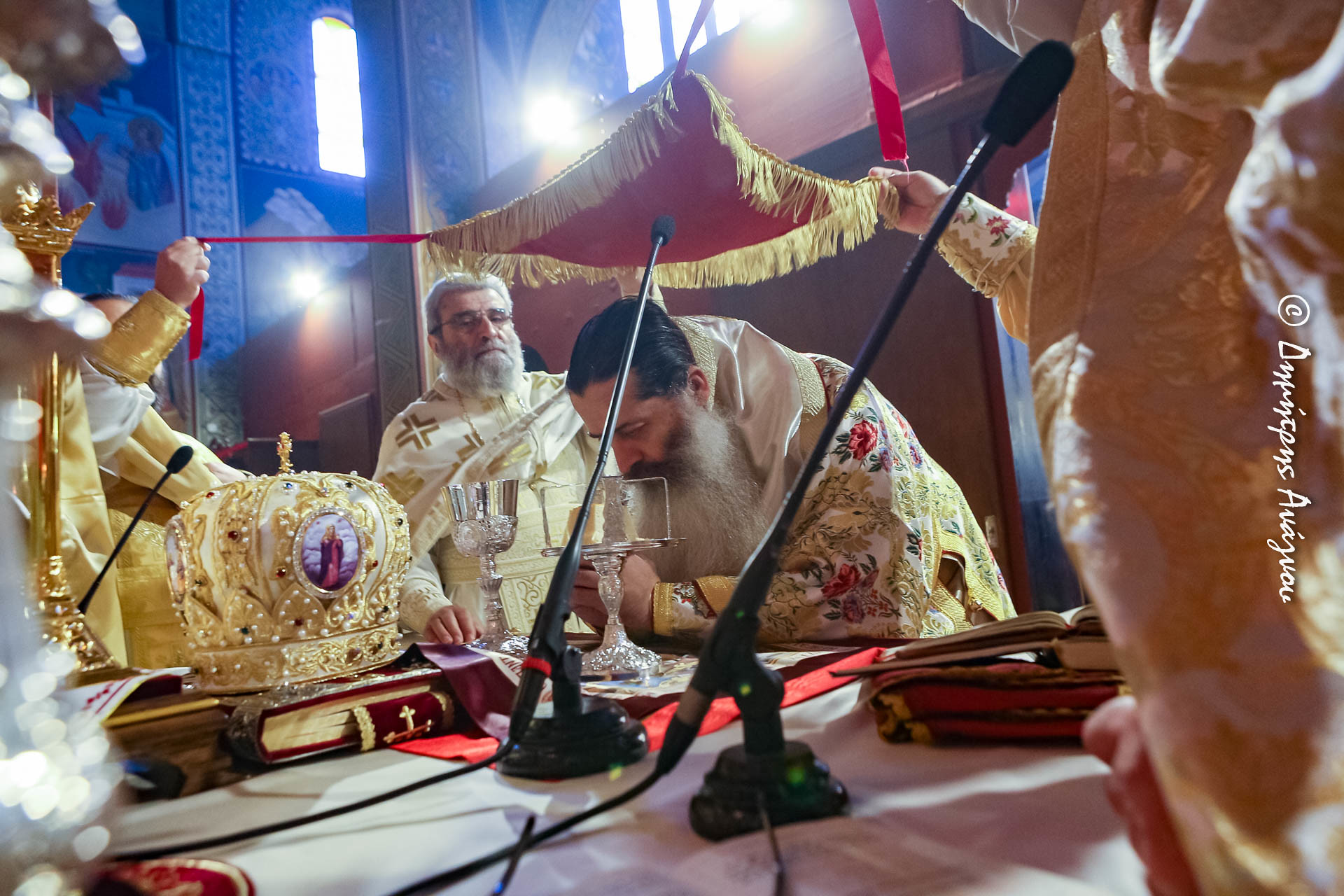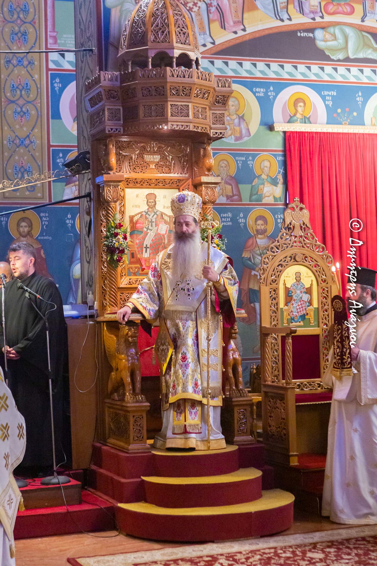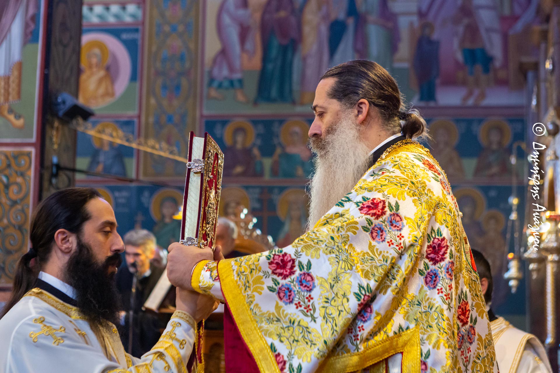 Ανήμερα της εορτής, ο Σεβασμιώτατος χοροστάτησε στον Όρθρο και στη συνέχεια τέλεσε την Αρχιερατική Θεία Λειτουργίας στον Ιερό Ναό του Αγίου Αθανασίου Γαλανέικων Λαμίας.