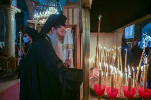 Ακολούθως ο Σεβασμιώτατος χοροστάτησε στον Μεγάλο Πανηγυρικό Εσπερινό στον Μεγαλοπρεπή Ιερό Ναό του Αγίου Αθανασίου της πολυπληθούς Ενορίας των Γαλανέικων, της Βόρειας Λαμίας.
