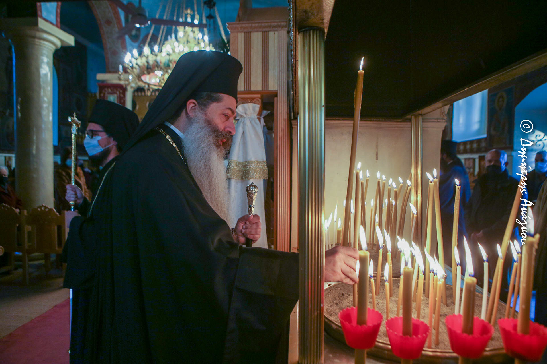 Ο Σεβασμιώτατος Μητροπολίτης Φθιώτιδος κ. Συμεών από το απόγευμα της παραμονής της εορτής χοροστάτησε αρχικά στον Παναγυρίζοντα Ναό του Αγίου Αθανασίου Λυγαριάς.