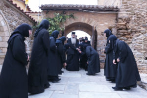 Τελευταίος σταθμός της ομάδος του Προτύπου Εκκλησιαστικού Σχολείου Λαμίας ήταν η Ιερά Μονή Παντοκράτορος (Ταώ Πεντέλης), όπου άπαντες έγιναν δεκτοί με περισσή αγάπη και εγκαρδιότητα από την Αγία Καθηγουμένη της Μονής Γερόντισσα Θεοφανώ και την περί αυτήν Ιερά Αδελφότητα.