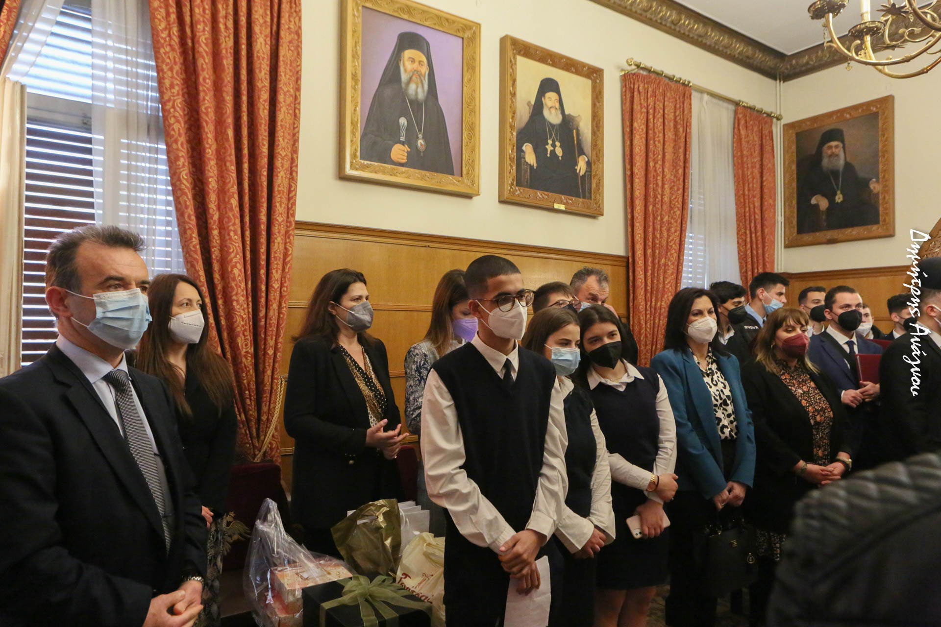 Κατόπιν, ο πρόεδρος του 15μελούς Συμβουλίου, μαθητής της Γ´ Λυκείου, Γιώργος Κατσαντώνης, εκπροσωπώντας όλους τους μαθητές εξέφρασε την χαρά και την συγκίνηση για την συνάντηση αυτή και κάλεσε τον Μακαριωτατο να εύχεται υπέρ του Σχολείου.